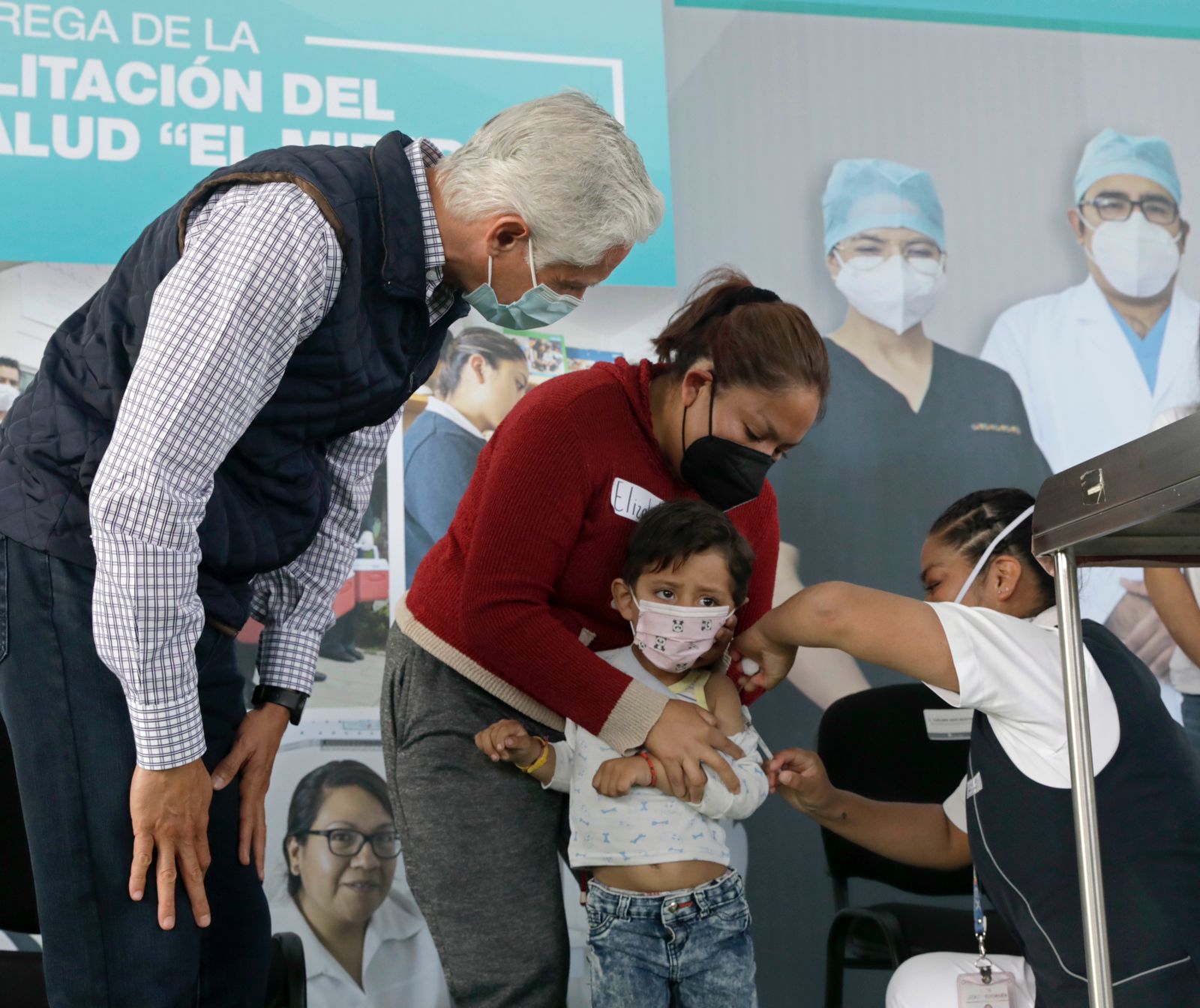 Por otro lado, y en compañía del Secretario de Salud estatal, el Gobernador del Edoméx puso en marcha la Semana Estatal de Reforzamiento de Vacunación, que tiene como meta proteger a más de 455 mil niñas y niños mexiquenses, de enfermedades como sarampión, rubéola, rotavirus, tétanos y otras más.
