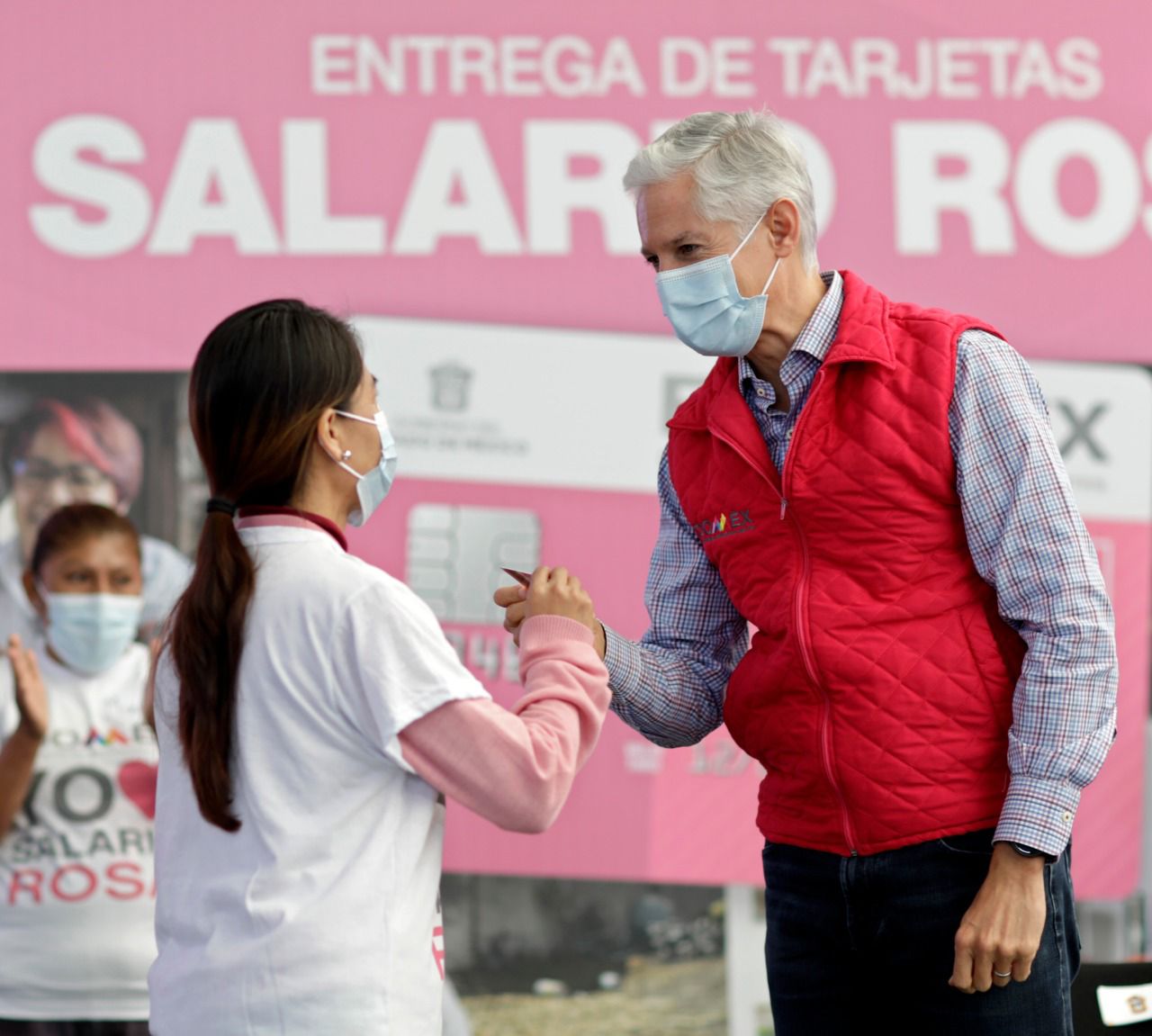 Al entregar tarjetas de este programa en Ecatepec, Del Mazo Maza enfatizó que el Salario rosa llegará de forma constante para que las amas de casa cuenten con este ingreso y de esta manera puedan sacar adelante a sus familias, a la par de invertirlo en lo que necesiten.