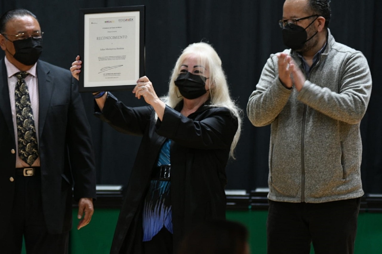 - Entrega Rodrigo Macías, a nombre del Gobernador Alfredo Del Mazo Maza, distintivo por su trabajo en la trayectoria de la agrupación.