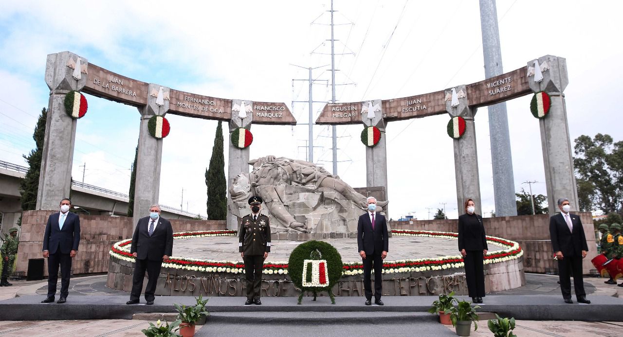 Para concluir la ceremonia, el Gobernador Alfredo Del Mazo, junto con Ricardo Sodi Cuellar, Presidente del Tribunal Superior de Justicia, el General Ernesto José Zapata, Comandante de la 22 Zona Militar, Ernesto Nemer Álvarez, Secretario General de Gobierno, Ingrid Schemelensky Castro, Presidenta de la Mesa Directiva para el Primer Periodo Ordinario de la LXI Legislatura, y Juan Rodolfo Sánchez, Alcalde de Toluca, realizó una Guardia Solemne de Honor al pie del monumento erigido en memoria de los Niños Héroes de Chapultepec.