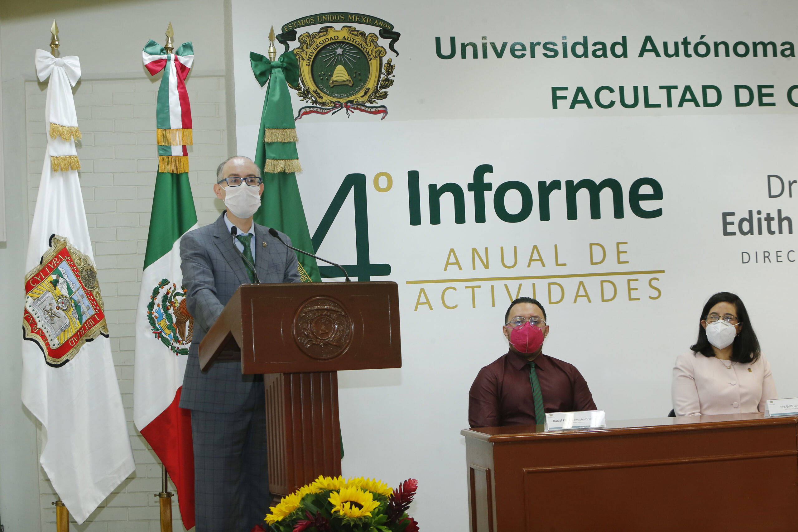 Al presidir el Cuarto Informe anual de la directora de la Facultad de Odontología, Edith Lara Carrillo, el rector subrayó que su capacidad de adaptación y el elevado compromiso que ha mostrado la comunidad universitaria ha favorecido la reducción de indicadores como reprobación y abandono escolar.