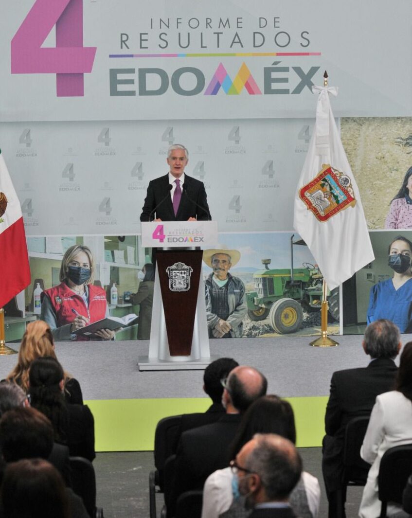 En su Cuarto Informe de Resultados, que también atestiguaron Adán Augusto López Hernández, Secretario de Gobernación, Olga Sánchez Cordero, Presidenta de la Mesa Directiva del Senado de la República, Claudia Sheinbaum Pardo, Jefa de Gobierno de la Ciudad de México, Ingrid Schemelensky Castro, Presidenta de la Mesa Directiva para el Primer Periodo Ordinario de la LXI Legislatura, Ricardo Sodi Cuellar, Presidente del Tribunal Superior de Justicia, Maurilio Hernández González, Presidente de la Junta de Coordinación Política de la LXI Legislatura y gobernadores de diversas entidades del país, Del Mazo Maza apuntó que, una vez superados los efectos iniciales de la pandemia, el mundo empieza a recuperar su dinamismo económico, y que el Estado de México se prepara para competir en el nuevo entorno económico global, consolidándose como el mayor centro logístico del país, atrayendo inversiones nacionales y extranjeras.