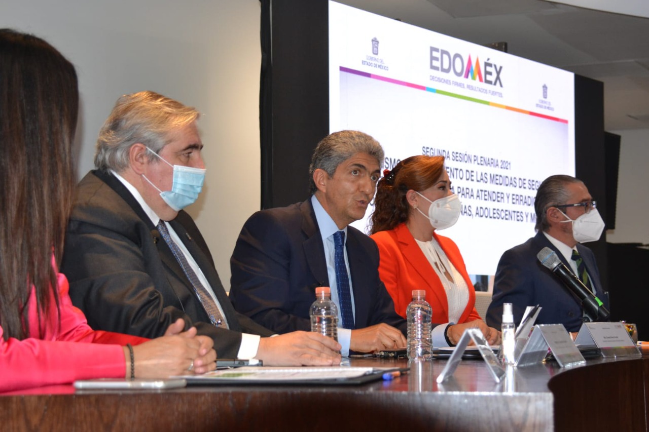 Toluca, Estado de México, 29 de septiembre de 2021. El Secretario General de Gobierno, Ernesto Nemer Alvarez, clausuró los trabajos de la “Segunda Sesión Plenaria del Mecanismo de Seguimiento de las Medidas de Seguridad, Prevención y Justicia para Atender y Erradicar la Violencia Contra las Niñas, Adolescentes y Mujeres”.