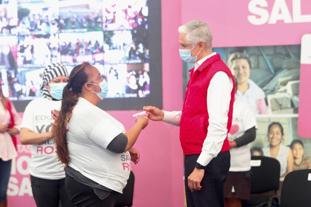 Alfredo Del Mazo hizo un llamado a las beneficiarias a que compartan las beneficios del Salario Rosa, al mismo tiempo de invitar a las mujeres que no cuentan con este apoyo, a que se sumen al programa más importante que tiene la administración a su cargo.