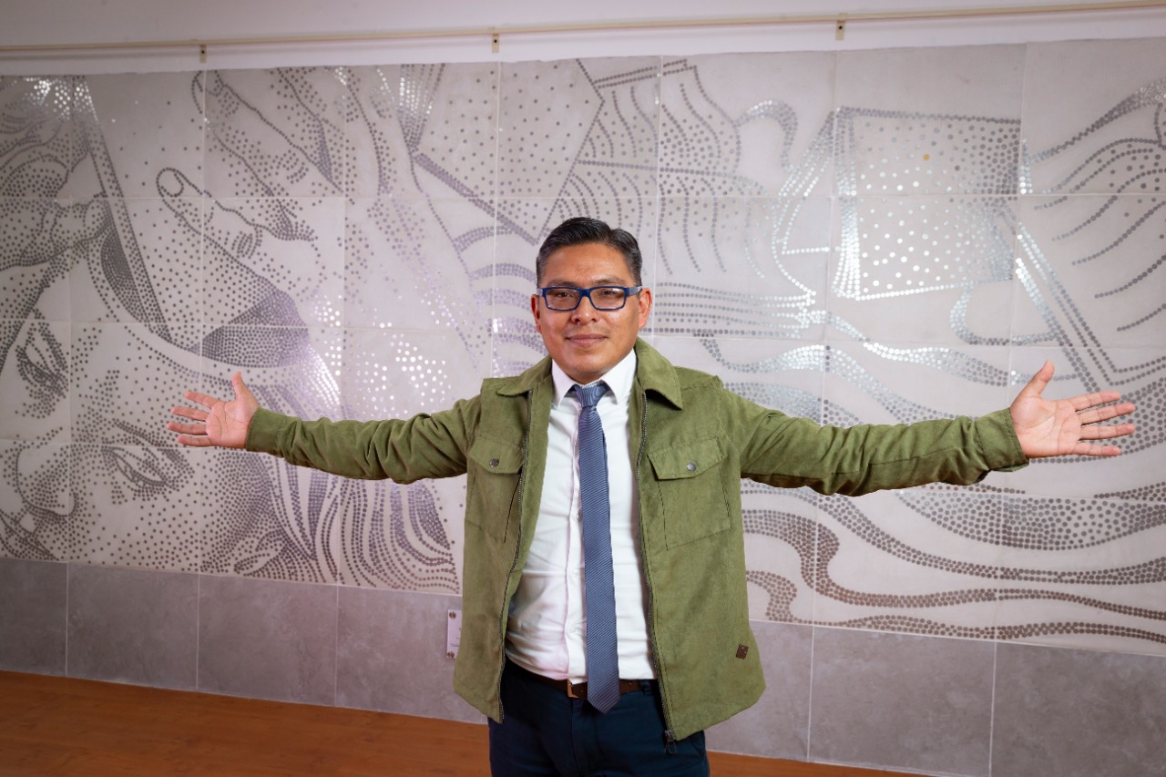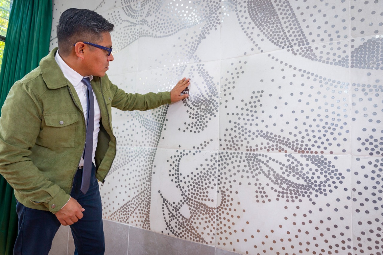 Toluca, México, 01 de octubre de 2021.- Tras ocho meses de trabajo, el artista universitario, Carlos Badillo Cruz, concluyó la obra titulada, “La otra cara de la moneda. Una perspectiva de la economía visual”, el primer mural hecho con base en estas piezas dentro de la Universidad Autónoma del Estado de México (UAEM).