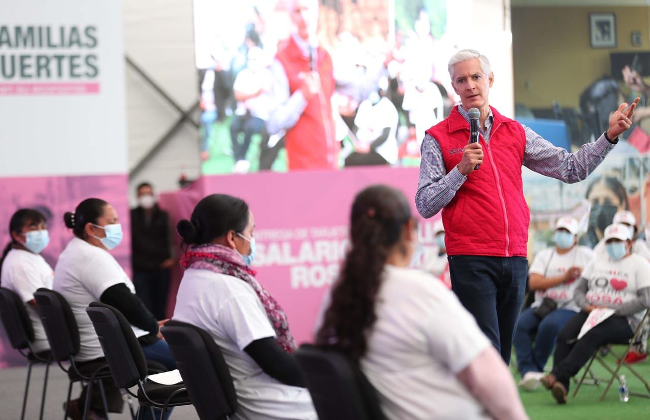 En esta ocasión el Gobernador mexiquense entregó casi 8 mil tarjetas del Salario rosa a beneficiarias de los municipios de Toluca y Zinacantepec quienes se suman a las más de 462 mil amas de casa que ya reciben este programa en todo el territorio estatal.