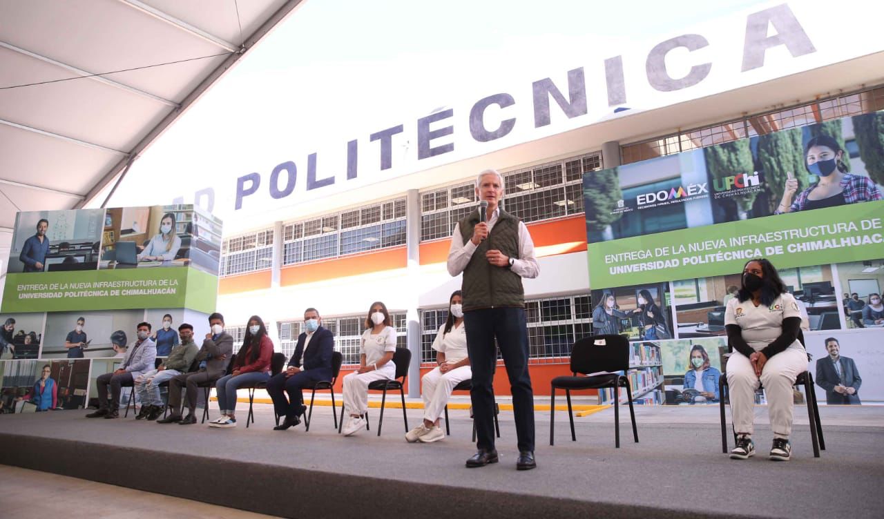 «Me da mucho gusto estar el día de hoy en esta importante Universidad Politécnica de Chimalhuacán, en un día especial, porque oficialmente hacemos entrega de un nuevo edificio de esta Universidad. Este es un buen reconocimiento a los jóvenes y al talento que hay en el Estado de México, por eso me da muchísimo gusto que hoy estemos fortaleciendo esta institución, que estemos fortaleciendo la educación superior en el Estado de México, y en especial la Universidad Politécnica de Chimalhuacán», enfatizó el Gobernador.