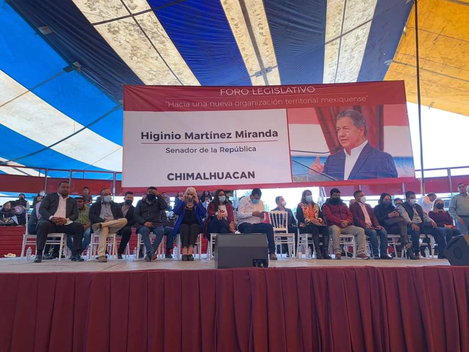 Toluca, México, 26 de octubre de 2021. Ante la dimensión de los llamados «Foros de Consulta» que realiza el senador Higinio Martínez Miranda, con el pretexto de tener el punto de vista de los ciudadanos «para hacer una nueva Constitución del Estado de México», han surgido cuestionamientos de diversos partidos políticos de sobre el el origen del dinero con el que se pagan esas reuniones, a las que asisten cientos y hasta miles de personas en diferentes municipios de la entidad.