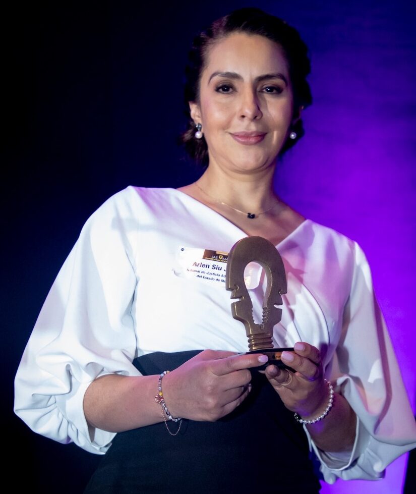 La Maestra en Derecho, Arlen Siu Jaime Merlos, Magistrada Presidenta del Tribunal de Justicia Administrativa del Estado de México (TRIJAEM) recibió el premio en representación de la institución, en la categoría Inteligencia Artificial, Analítica y Visión Computacional, del ranking del sector público “Las Más Innovadoras”.