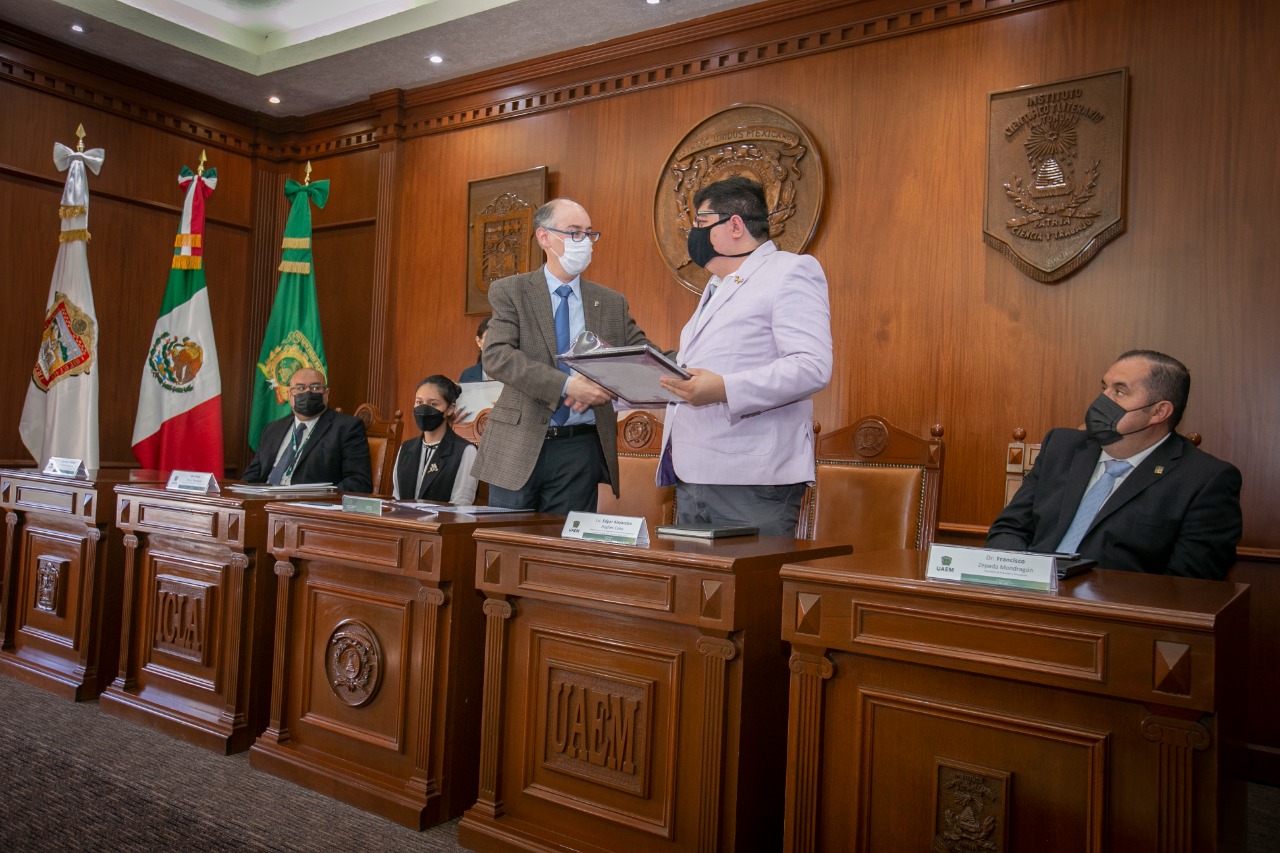En la Sala “Dr. Gustavo Baz Prada” del Edificio de Rectoría, manifestó que las y los estudiantes son agentes de cambio. “Este apoyo lo pueden utilizar para cambiar el mundo”.