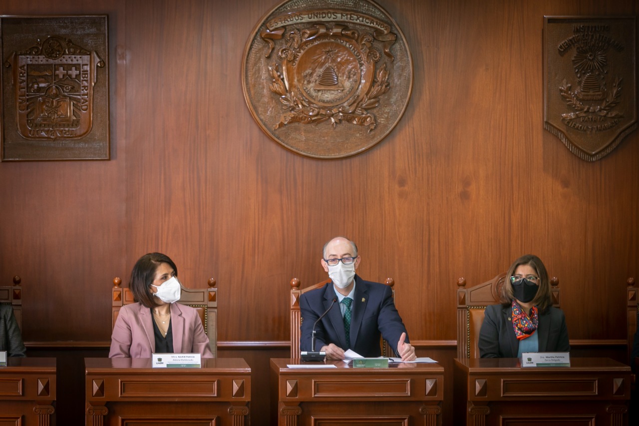 Toluca, México, 20 de enero de 2022. En la búsqueda de soluciones a los desafíos y la complejidad que presenta el mundo actual, la Universidad Autónoma del Estado de México (UAEMéx) firmó, a través del rector Carlos Eduardo Barrera Díaz, un convenio de colaboración con la Organización de Estados Iberoamericanos para la Educación, la Ciencia y la Cultura (OEI), por medio de su representante permanente en México, Xóchitl Patricia Aldana Maldonado, mediante el cual se fortalecerá la formación de estudiantes e investigadores de esta casa de estudios.