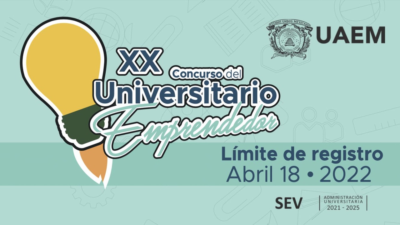 Toluca, México, 7 de febrero de 2022.- Para promover y reconocer el potencial emprendedor y el desarrollo de modelos de negocio, la Secretaría de Extensión y Vinculación de la Universidad Autónoma del Estado de México (UAEM) invita a la comunidad universitaria a participar en el XX Concurso del Universitario Emprendedor.