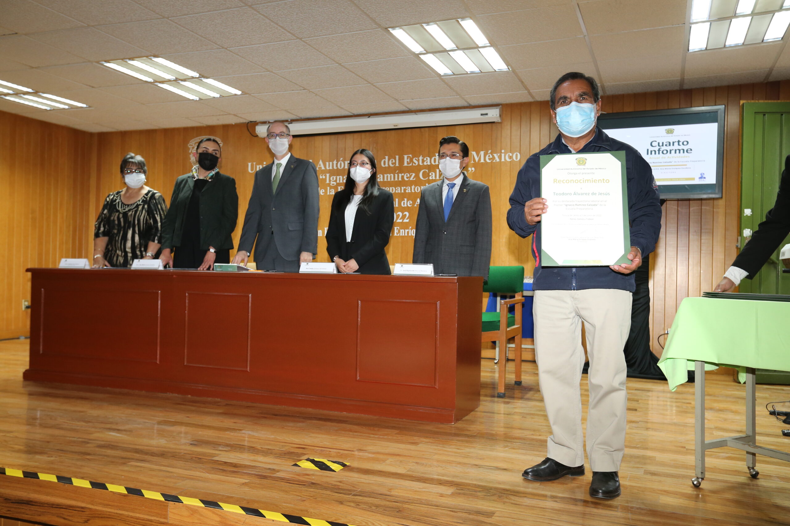 Durante el informe se entregaron reconocimientos al personal docente y administrativo, por su destacado desempeño y trayectoria profesional dentro de este plantel de la Escuela Preparatoria.