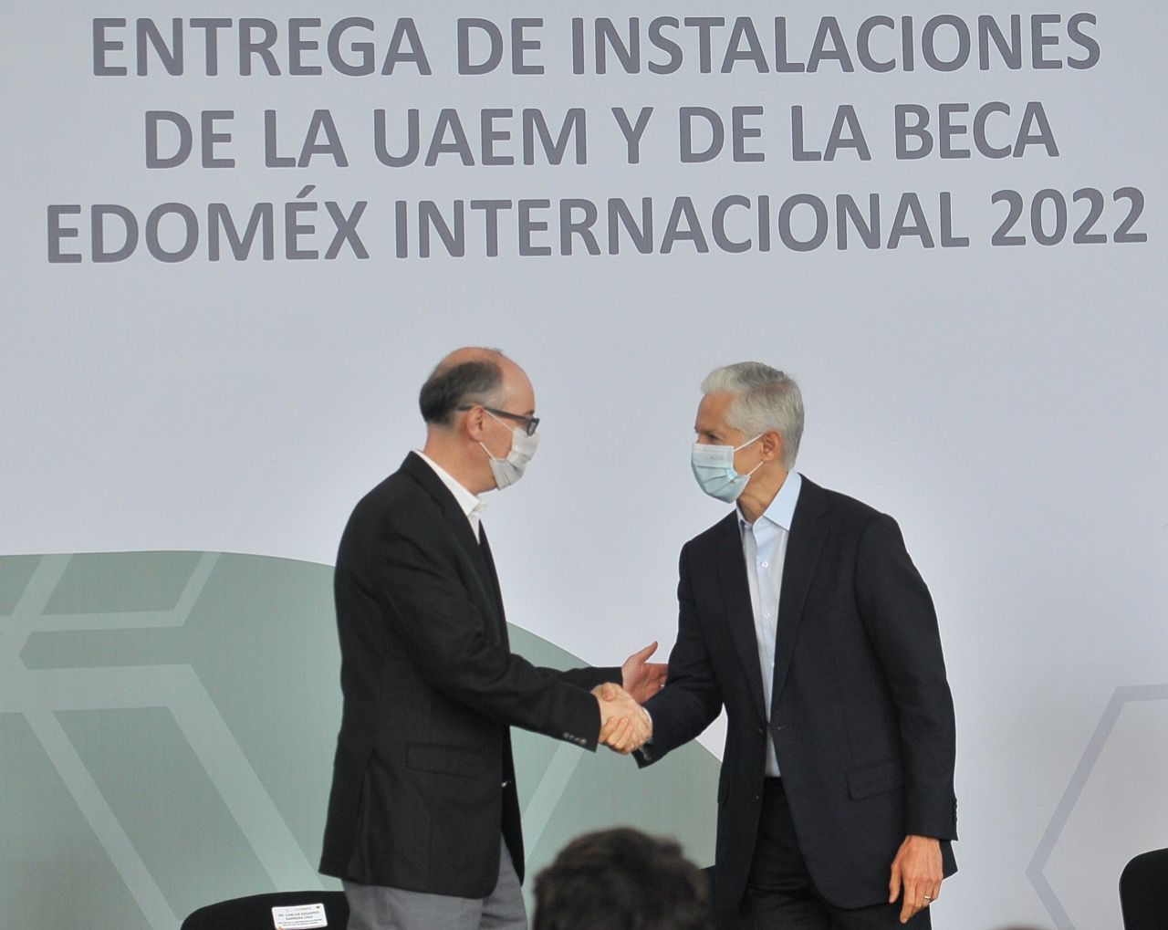 Toluca, Estado de México, 7 de julio de 2022. Para seguir mejorando la formación profesional de la juventud mexiquense y brindar a la comunidad universitaria infraestructura más completa y moderna, el Gobernador Alfredo Del Mazo Maza y el Rector de la Universidad Autónoma del Estado de México (UAEM), Carlos Barrera Díaz, entregaron nuevas instalaciones a esta casa de estudios y Becas EDOMÉX Internacional 2022, a universitarios destacados.