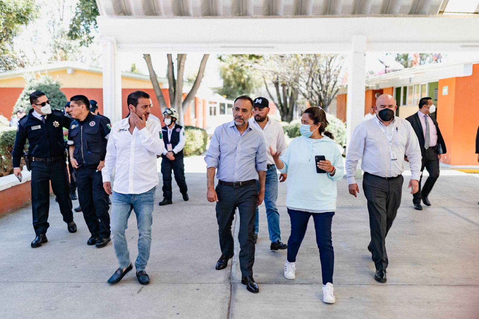 Metepec, México, 22 de septiembre de 2022. El presidente municipal de Metepec Fernando Flores Fernández, hizo u n recorrido por algunas escuelas que reportaron afectación por el sismo de la madrugada de este jueves.