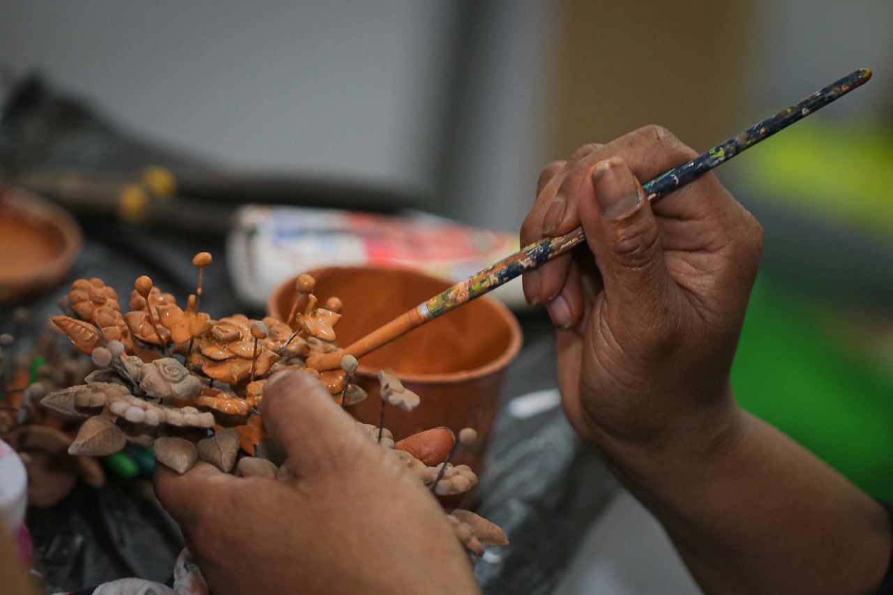 En la zona centro del municipio, las y los visitantes encontrarán áreas de comercialización y de producción de artesanías, podrán adquirir increíbles piezas únicas como árboles de la vida, soles, lunas, calaveras, candeleros, jarrones, macetas, vitrales, entre otros.