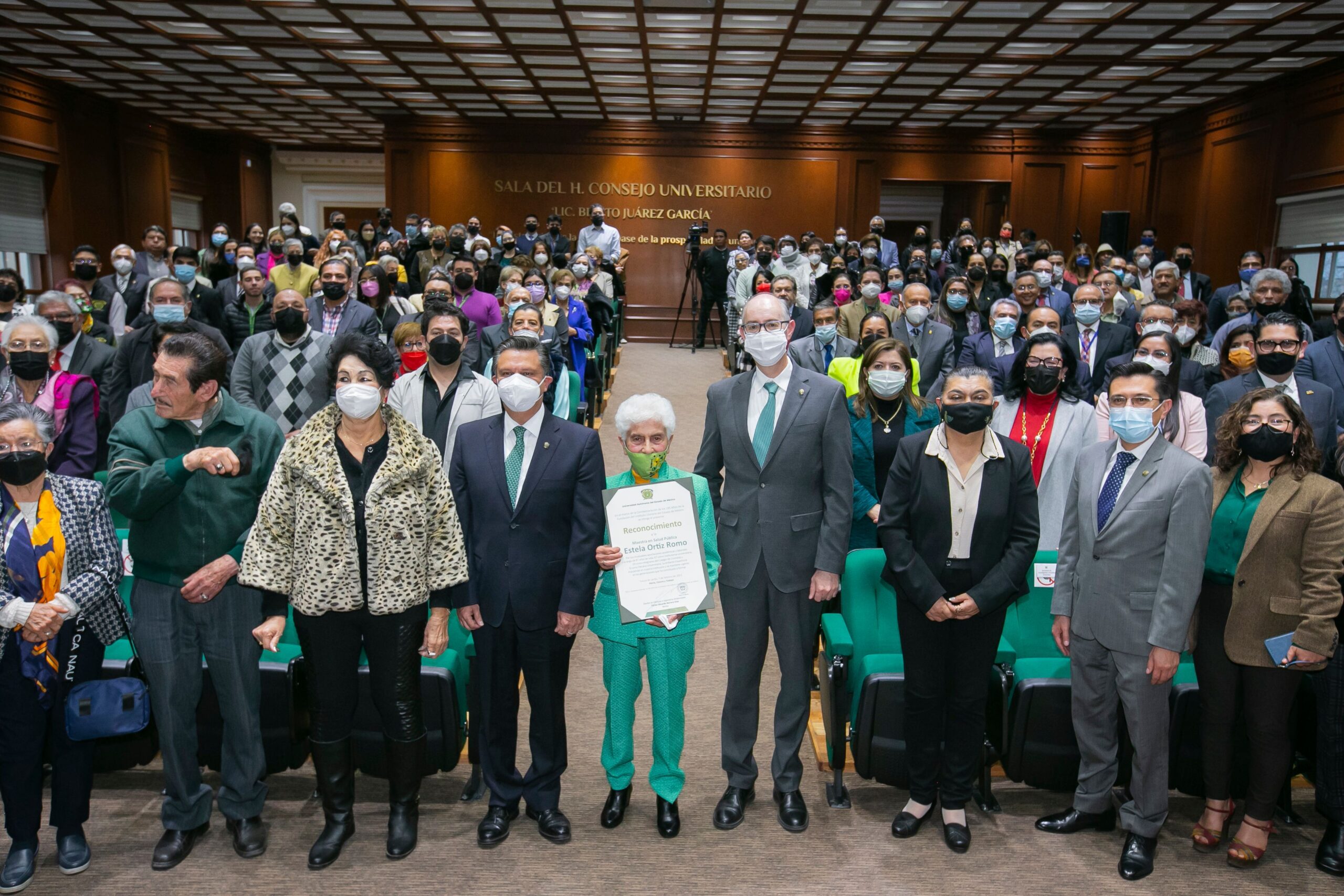 - El rector de la UAEMéx, Carlos Eduardo Barrera Díaz, destacó su servicio y vocación por la docencia, y por apoyar a los más vulnerables.