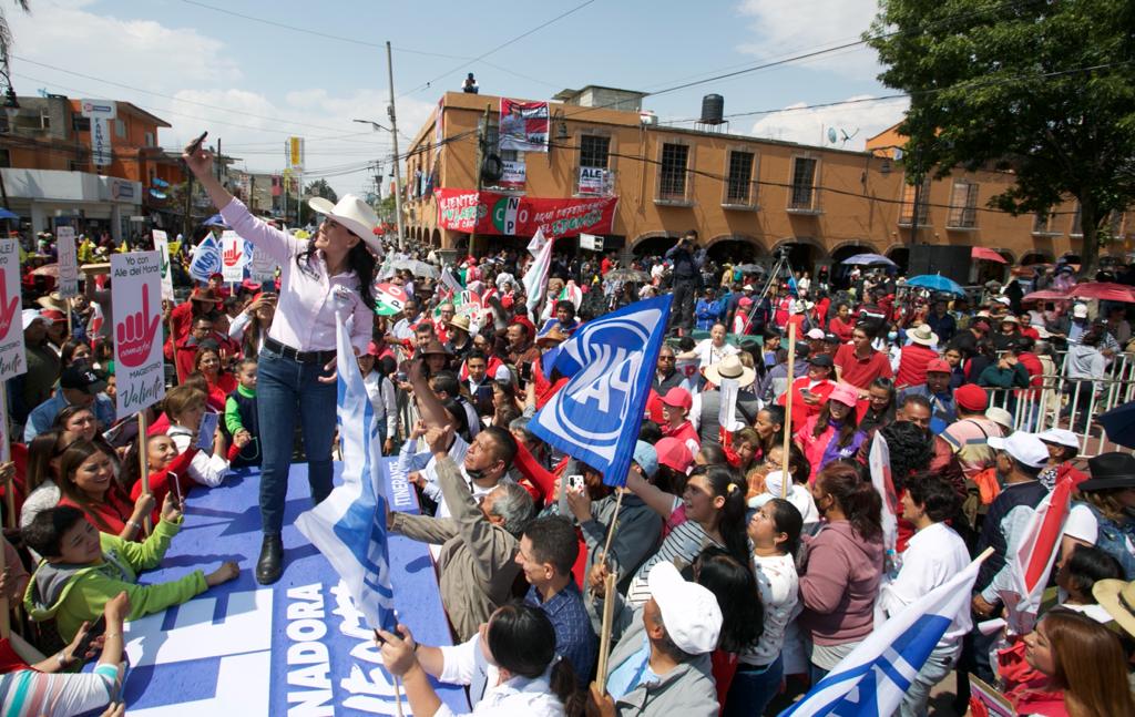 - “Hay mucho que defender en el Estado de México, hemos hecho bastante por esta tierra y protegeremos lo que está bien”, dijo la candidata del PAN, PRI, PRD y Nueva Alianza.