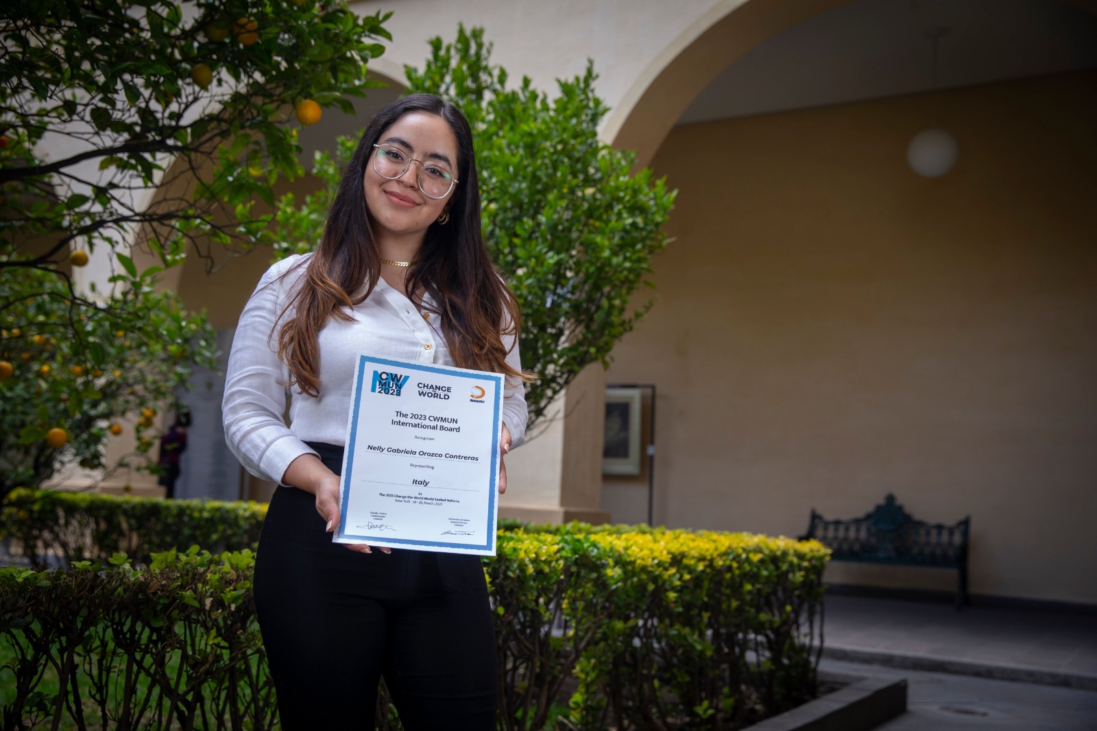??Toluca, México, 9 de mayo de 2023. Impulsada por la motivación de participar en entornos internacionales y conocer líderes mundiales, Nelly Gabriela Orozco Contreras, egresada de la Facultad de Ciencias Políticas y Sociales de la Universidad Autónoma del Estado de México (UAEMéx), participó en el simulador de la Asamblea de Naciones Unidas 2023, representando a la delegación de Italia en el Comité United Nations High Commissioner for Refugees a través del Programa Change the World.