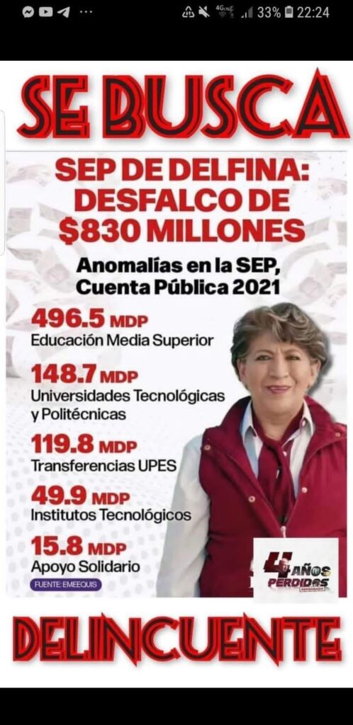 - La candidata de Morena, Delfina Gómez, violó la ley electoral al usar vehículos oficiales para un evento que realizó este día en Ixtapan de la Sal.
