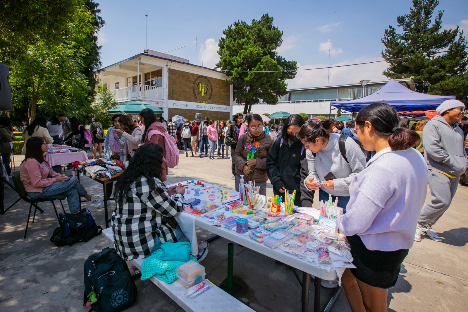 ?? Toluca, México, 17 de mayo de 2023. Con el propósito de fomentar el emprendimiento entre estudiantes de nivel superior desde una perspectiva financiera y organizativa desde la que se puede analizar el comportamiento social, la Facultad de Ciencias de la Conducta (FACICO) de la Universidad Autónoma del Estado de México (UAEMéx) fue sede del Mercado Emprendedor 2023.