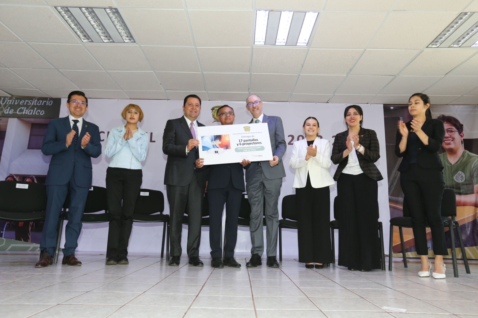En el Centro Universitario Valle de Chalco, donde inauguró el ciclo escolar el titular de la Secretaría de Educación de la entidad, Gerardo Monroy Serrano, el rector encabezó la entrega de infraestructura y equipamiento: la Sala de Evaluación Profesional y Grado, la rehabilitación de Laboratorio de Ciencias Básicas y Biomédicas, la Sala de Lactancia, el sistema de captación de agua de lluvia, gimnasio y vestidores, la trotapista y canchas de básquetbol y fútbol rápido, así como 17 pantallas de televisión de 65 pulgadas y seis proyectores.