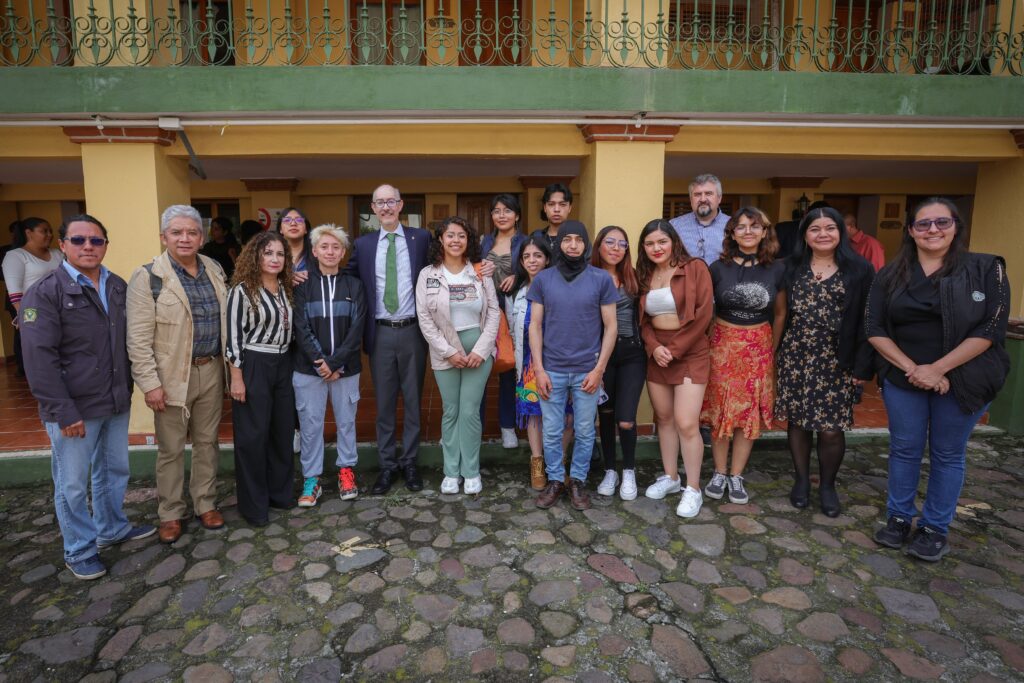 A la comunidad del Plantel “Dr. Pablo González Casanova” de la Escuela Preparatoria, ubicado en el municipio de Tenancingo, entregó 10 pantallas, 7 proyectores y 50 butacas; a la del Plantel «Mtro. José Ignacio Pichardo Pagaza» de la Escuela Preparatoria, ubicado en Almoloya de Alquisiras, 4 pantallas y 2 proyectores.