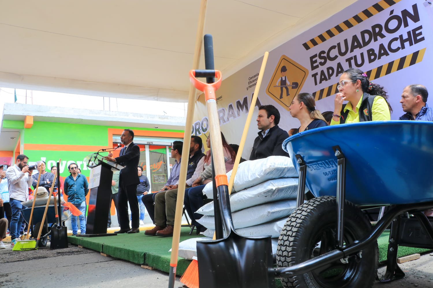 “Escuadrón Tapa tu Bache”, dispondrá de 500 toneladas de mezcla asfáltica en frío que se utilizarán en las 52 delegaciones, donde, previa capacitación, se realizará la labor de limpieza, aplicación y compactación del material en baches de determinadas dimensiones.