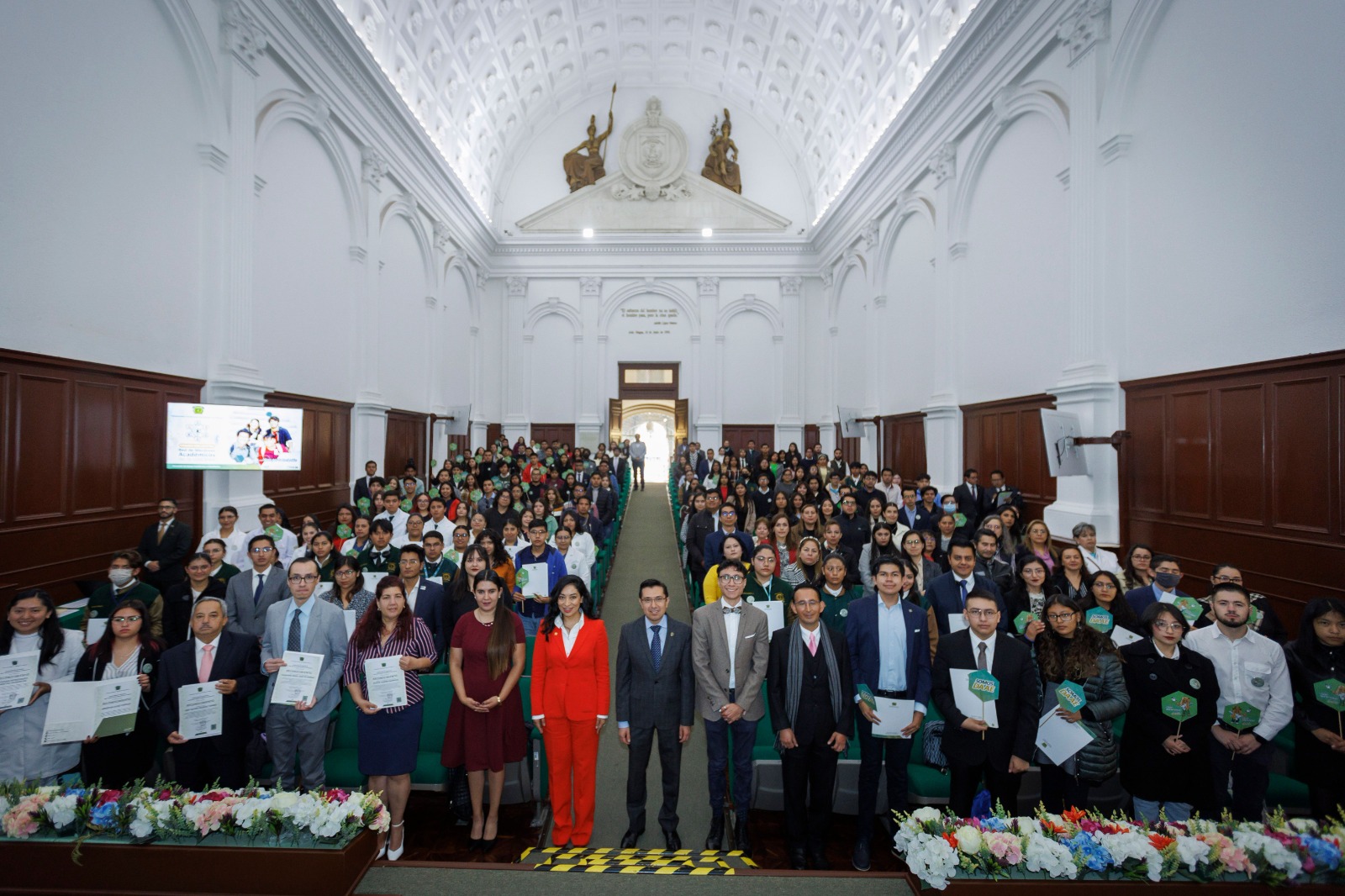 El alcalde de Toluca, Raymundo Martínez Carbajal acompañado por el Presidente Honorario del Sistema Municipal DIF, Raymundo Martínez Zendejas, hizo entrega a la agrupación de la icónica calavera de azúcar, símbolo de historia y tradición centenaria, y un reconocimiento por su magnífica presentación en el marco de la gran fiesta de la ciudad.