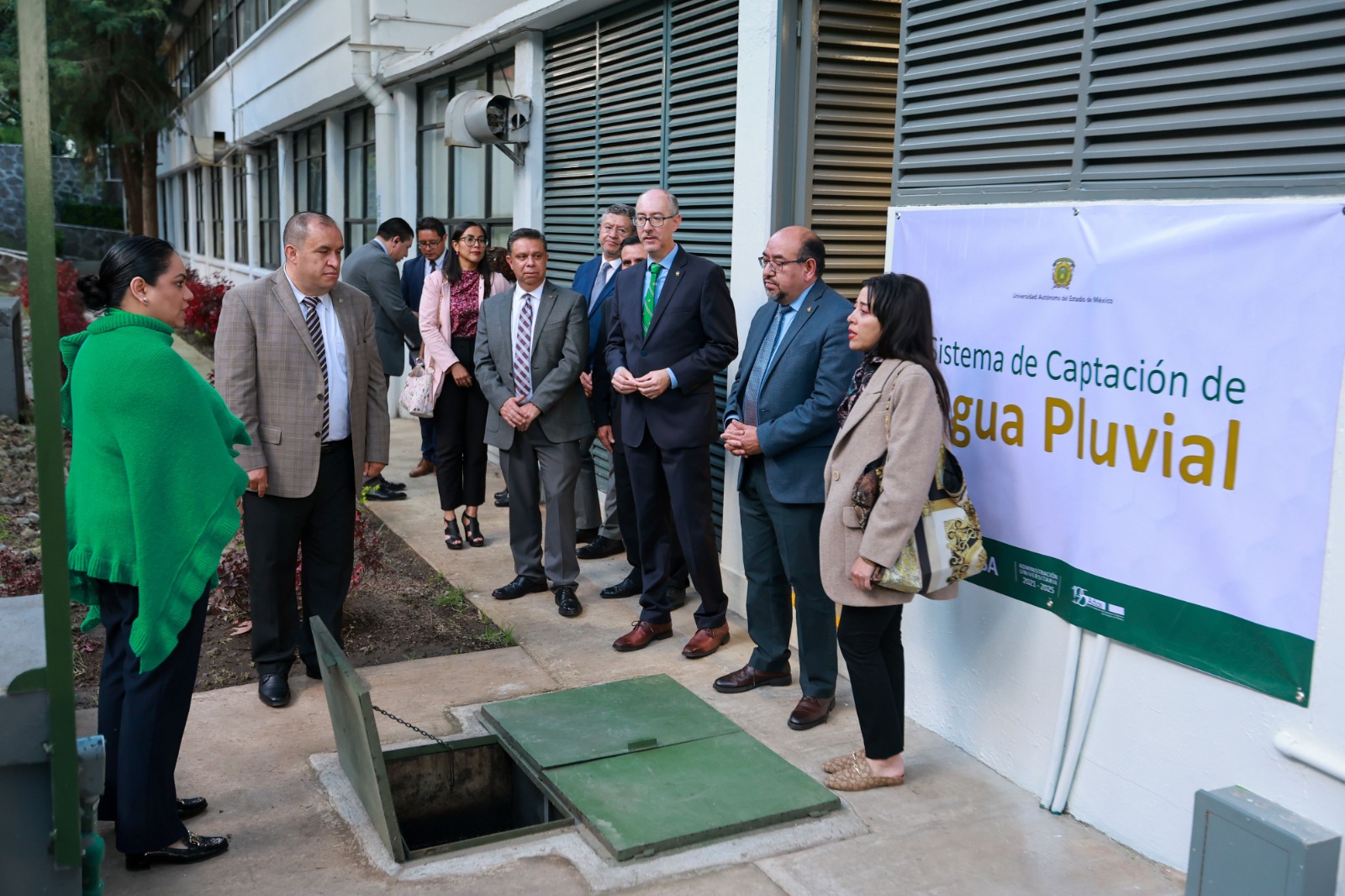 Previo a la firma del convenio, se llevó a cabo un recorrido por el Sistema de Captación de Agua Pluvial y el Laboratorio Nacional de Observación de la Tierra (LANOT) de la Facultad de Geografía para conocer las labores que la UAEMéx realiza en materia medio ambiental.