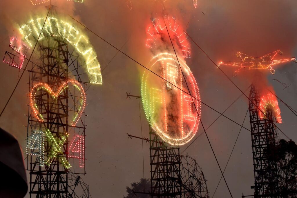 Al término del evento, los artesanos de San Mateo Tlalchichilpan ofrecieron al candidato y a los espectadores un espectáculo de juegos pirotécnicos.