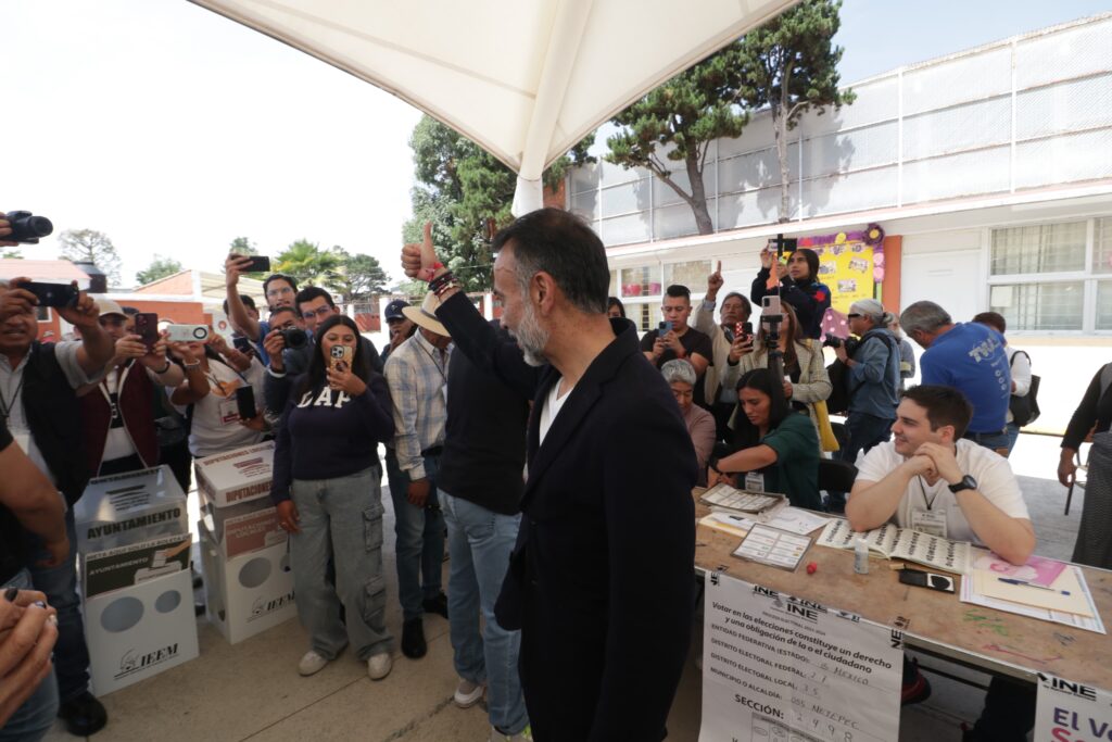 El aspirante sufragó en la casilla en San Francisco Coaxusco, donde Hizo votos por una copiosa participación y una jornada en paz.