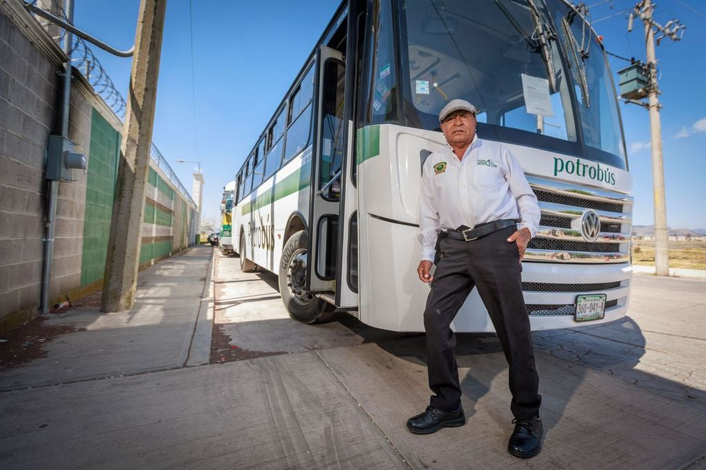 Atlacomulco, México, 9 de junio de 2024. Sentado en su sitio de conductor del Potrobús que desde hace años conduce, con lágrimas en los ojos, Mauro confesó lo difícil que fue tomar la decisión de jubilarse, luego de 35 años de servicio en el Centro Universitario Atlacomulco de la Universidad Autónoma del Estado de México (UAEMéx).