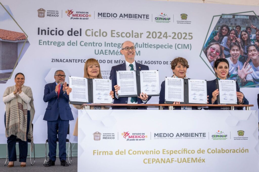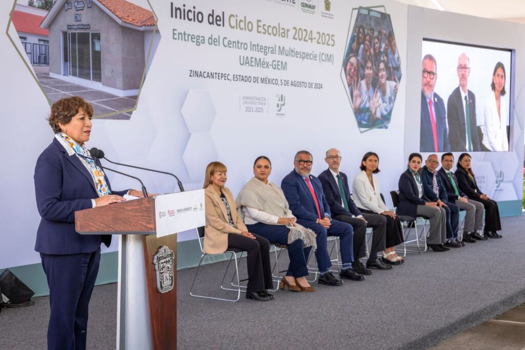 *Zinacantepec, México, 5 de agosto de 2024. La Universidad Autónoma del Estado de México (UAEMéx) es pilar en la construcción de una sociedad más equitativa, inclusiva, justa y próspera, afirmó la gobernadora de la entidad, Delfina Gómez Álvarez, al inaugurar, con el rector Carlos Eduardo Barrera Díaz, el Ciclo Escolar 2024-2025 de esta casa estudios y entregar el Centro Integral Multiespecie (CIM) UAEMéx-GEM, en San Juan de las Huertas, municipio de Zinacantepec.