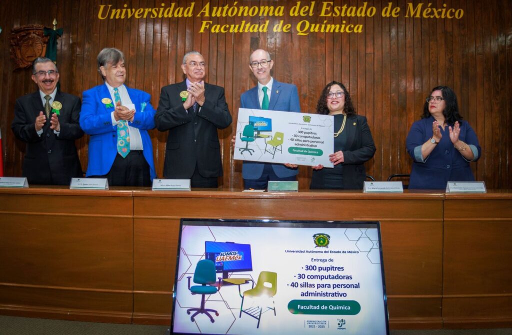Asimismo, Barrera Díaz detalló que gracias a una gestión honesta y eficiente, durante la Administración Universitaria 2021-2025 se ha fortalecido la infraestructura de los campus de la Facultad de Química, así como la instalación y puesta en operación de 400 paneles solares en el Centro Conjunto de Investigación en Química Sustentable UAEMéx–UNAM (CCIQS), lo que significa una reducción de 248 toneladas de dióxido de carbono al año, acción que contribuye a la consolidación de una Universidad Verde.