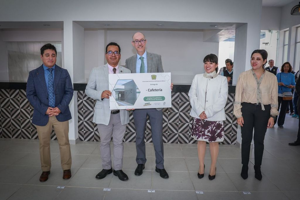 - El rector de la Universidad Autónoma del Estado de México, Carlos Eduardo Barrera Díaz, entregó la cancha de fútbol rápido, dos canchas de usos múltiples y la cafetería de la Unidad Académica Profesional Acolman.