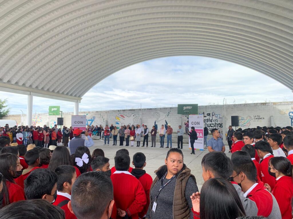 Entre las obras que fueron entregadas, resalta la colocación de un arcotecho en la Secundaria Número 0235 Ruta de la Independencia en Mayorazgo de León, beneficiando a 420 alumnos.