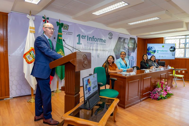 Ecatepec, México, 10 de noviembre de 2024. Permanentemente, el Centro Universitario Ecatepec de la Universidad Autónoma del Estado de México (UAEMéx) crece en calidad, inclusión y sustentabilidad, afirmó el rector Carlos Eduardo Barrera Díaz, al presidir la lectura del primer informe anual de actividades de la directora de este campus, Brenda Sarahi Cervantes Luna.