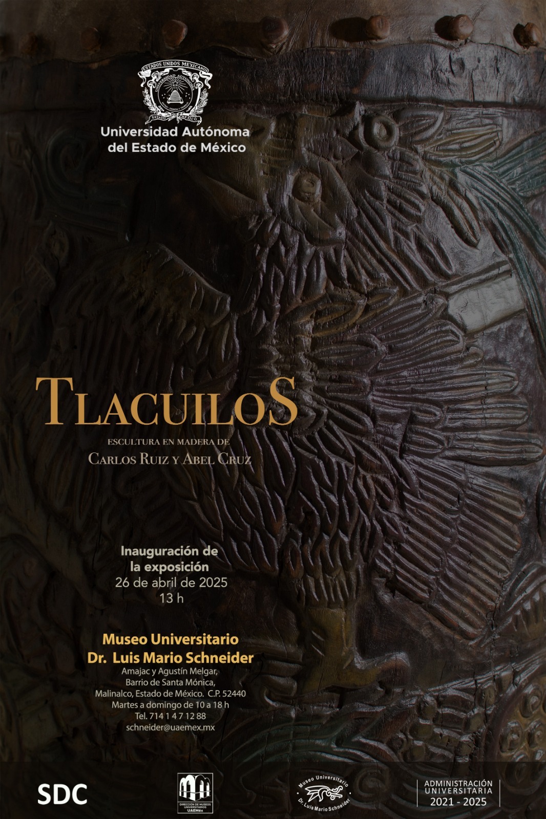 - El Museo Universitario Dr. Luis Mario Schneider tiene el honor de invitarle a la exposición «Tlacuilos», una muestra de escultura en madera de los artistas Carlos Ruiz Juárez y Abel Cruz Garcés.