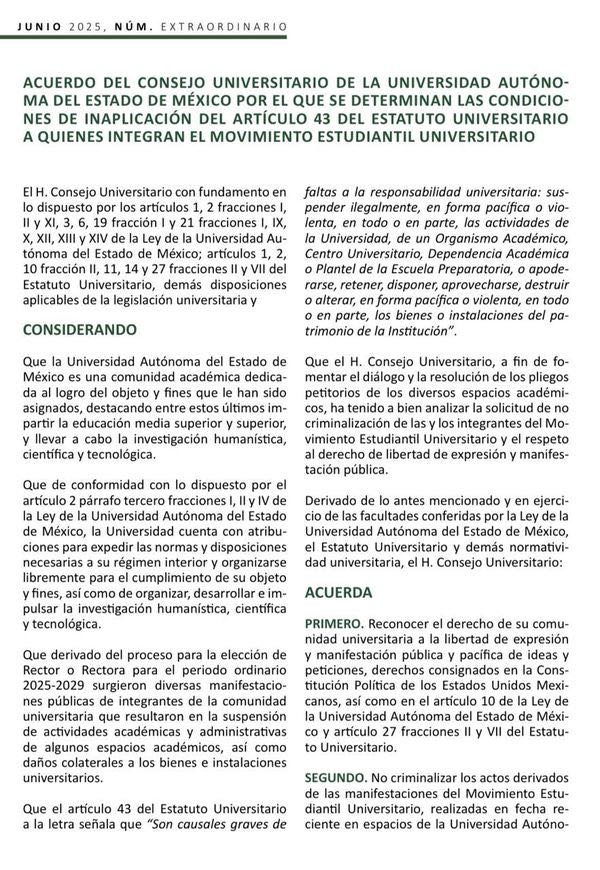 Con estas acciones, el H. Consejo Universitario, como máximo órgano de gobierno de la UAEMéx, reitera su compromiso con la atención al Pliego Petitorio General del Movimiento Estudiantil.