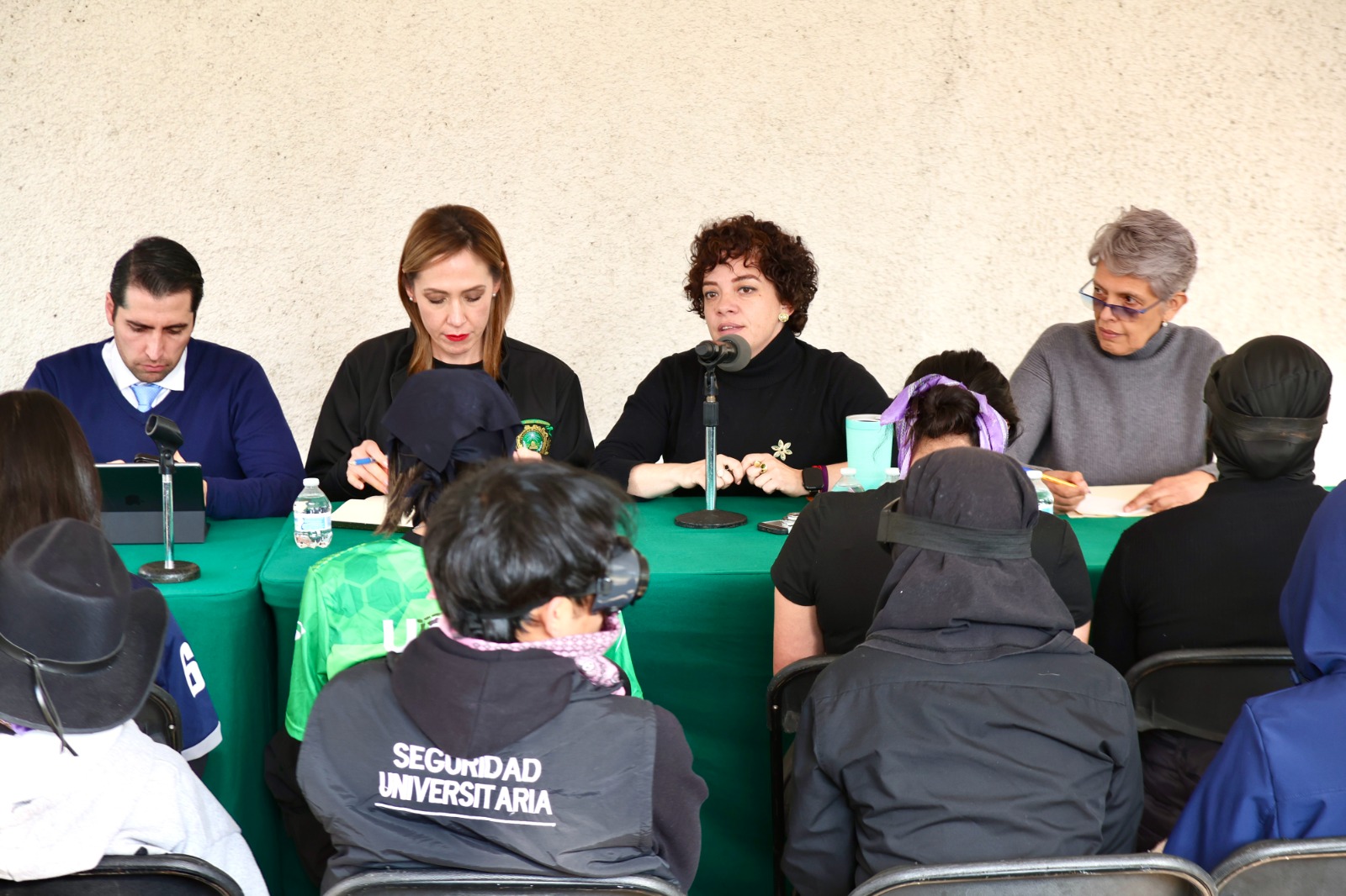 En el encuentro participaron la consejera Jurídica Universitaria, Evangelina Sales Sánchez; el secretario de Gobernanza Universitaria, Jorge Alejandro Vásquez Caicedo; la secretaria de Desarrollo y Fortalecimiento Institucional, María de las Mercedes Portilla Luja; la directora general de Comunicación Social Universitaria, María Fernanda Valdés Figueroa, y la directora de Museos Universitarios, María Guillermina Martínez.