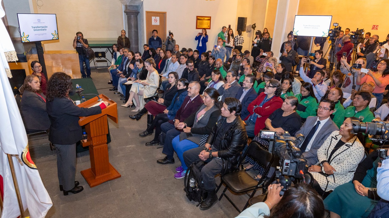 En el Centro Cultural Universitario “Casa de las Diligencias”, destacó que este encuentro busca brindar claridad sobre las acciones legales en curso y para avanzar en el proceso de diálogo para alcanzar acuerdos que permitan resolver la situación de manera institucional y transparente.