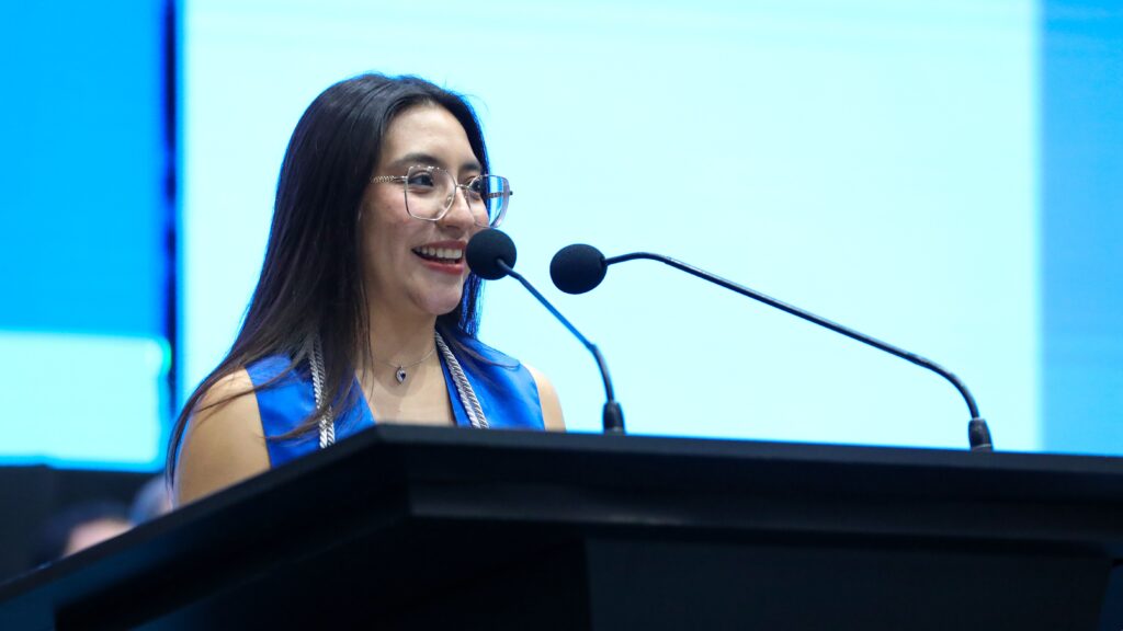 Líderes institucionales y oradores huésped, como Claudia Gómez Llamas, vicepresidenta de Marketing Global para Secure Power de Schneider Electric y Raúl Antonio González Zepeda, director de Ventas, Mercadotecnia y Postventa en Mercedes Benz Autobuses; compartieron mensajes inspiradores para los egresados.