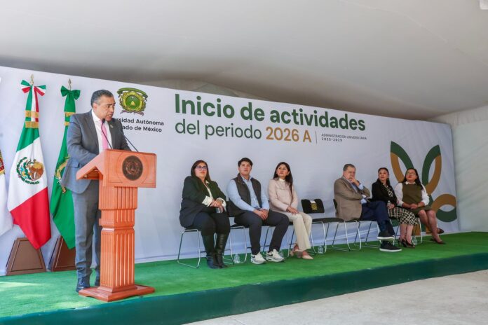 Ixtapan de la Sal, México, 9 de febrero de 2026. La consolidación de la Unidad Académica Profesional Ixtapan de la Sal de la Universidad Autónoma del Estado de México (UAEMéx) responde a una necesidad real y legítima de acercar la educación superior a zonas donde históricamente la oferta de educación resultaba escasa o nula. Esto reafirma el sentido de retribución social de nuestra universidad y el compromiso con la sociedad mexiquense, afirmó el secretario Académico de la institución, Francisco Herrera Tapia, al presidir la ceremonia de inicio de actividades del periodo 2026 A en este campus universitario.