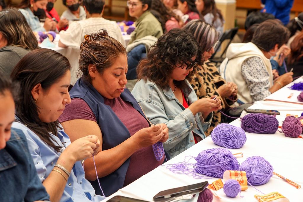 Para esta acción, la Secretaría de Igualdad Sustantiva y Cuidados, en conjunto con Lana Desastre, recolectará cuadros tejidos de 15 por 15 centímetros en tonalidades moradas, los cuales serán unidos para formar un “abrigo” colectivo destinado al árbol.