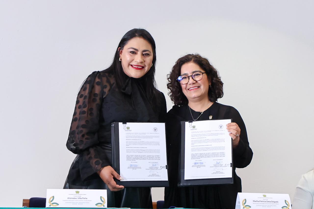 - La rectora de la Universidad Autónoma del Estado de México, Martha Patricia Zarza Delgado, y la presidenta municipal de Temascaltepec, Ahimelec Villa Peña, firmaron un convenio general de colaboración.