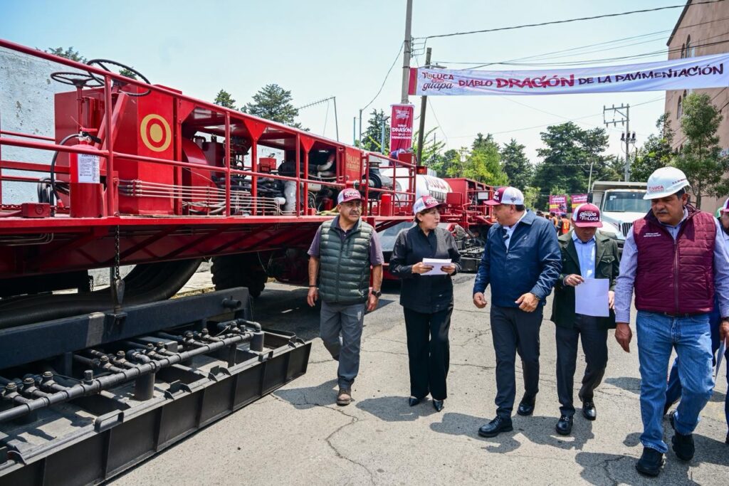 * Da banderazo de inicio a los trabajos en la avenida Valentín Gómez Farías, en la capital mexiquense, acompañada por el alcalde de Toluca, Ricardo Moreno.